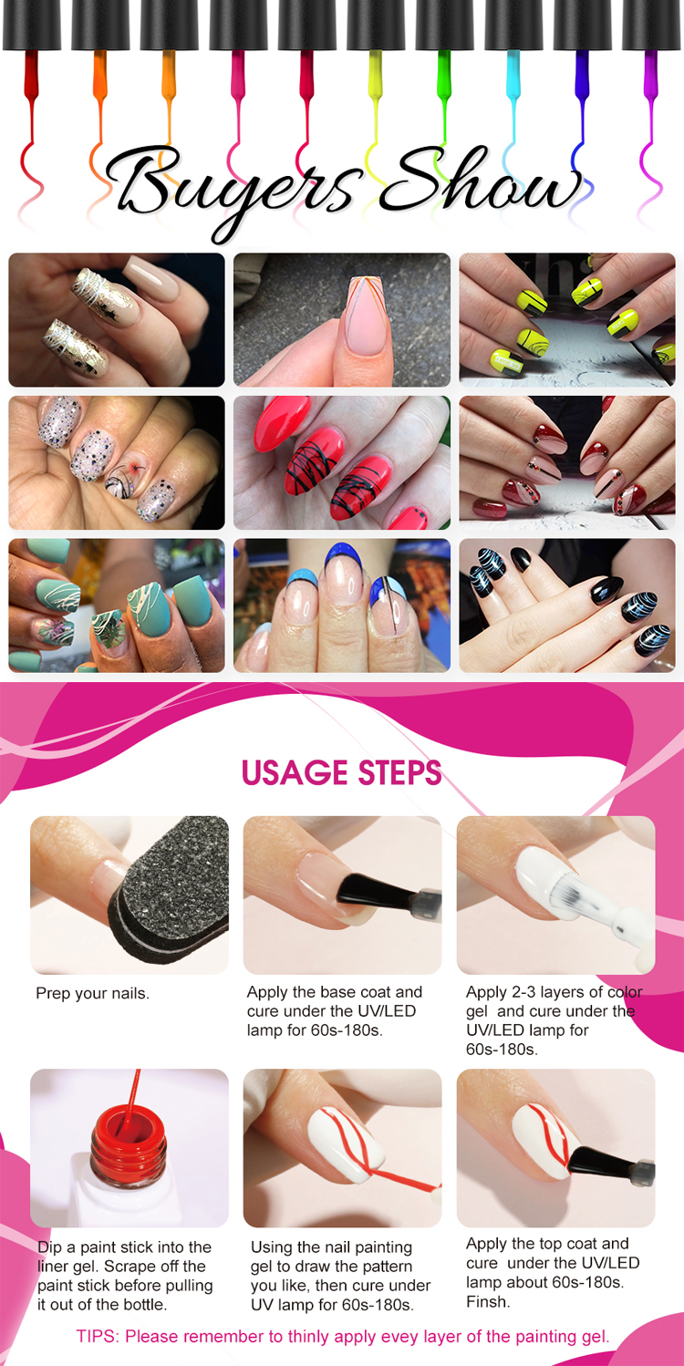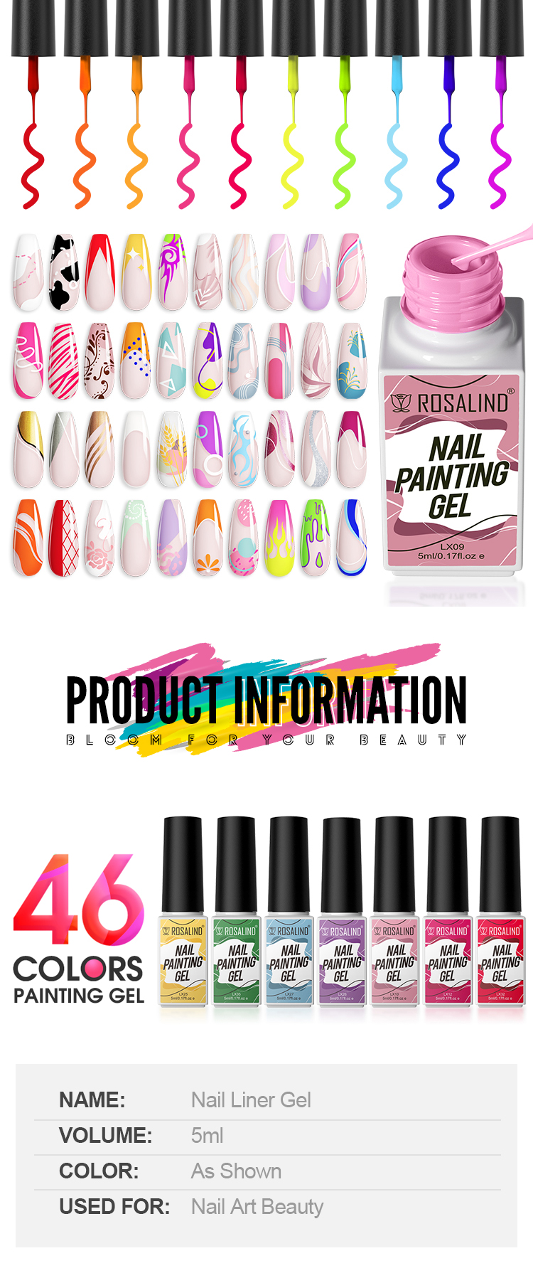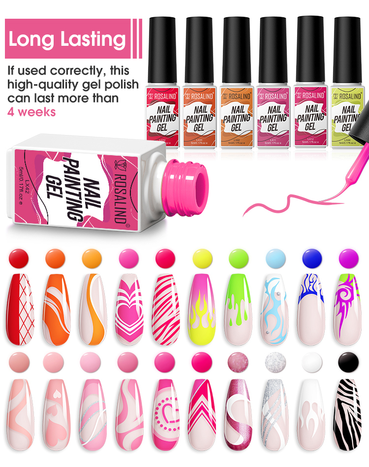 ROSALIND 5ml Soak Off Nail Art Colors Liner Gel Polish UV Lamp Painting Gel - LX10